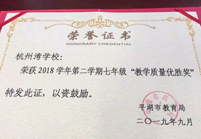 喜報(bào)|高新教育集團(tuán)旗下平湖杭州灣實(shí)驗(yàn)學(xué)校初中部教學(xué)質(zhì)量喜獲雙