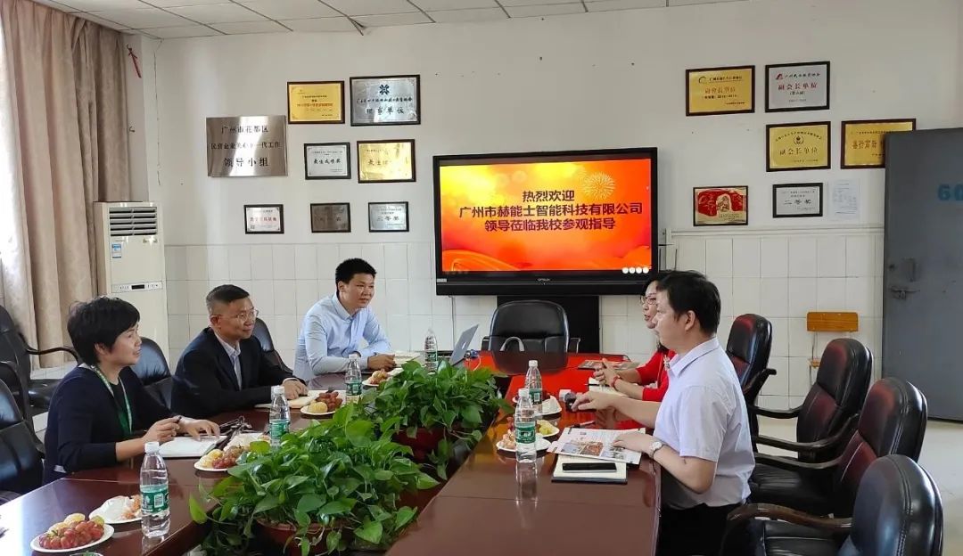 對(duì)于雙方企業(yè)合作事宜,廣州市赫能士智能科技有限公司反應(yīng)快速,11月12日,廣州市赫能士智能科技有限公司總經(jīng)理趙艷需、經(jīng)理王大蓉親臨我校,并且與我校執(zhí)行校長肖中圓、理工系主任王則如、年級(jí)主任肖亞軍共同商議雙方校企合作,并進(jìn)一步落實(shí)方案。